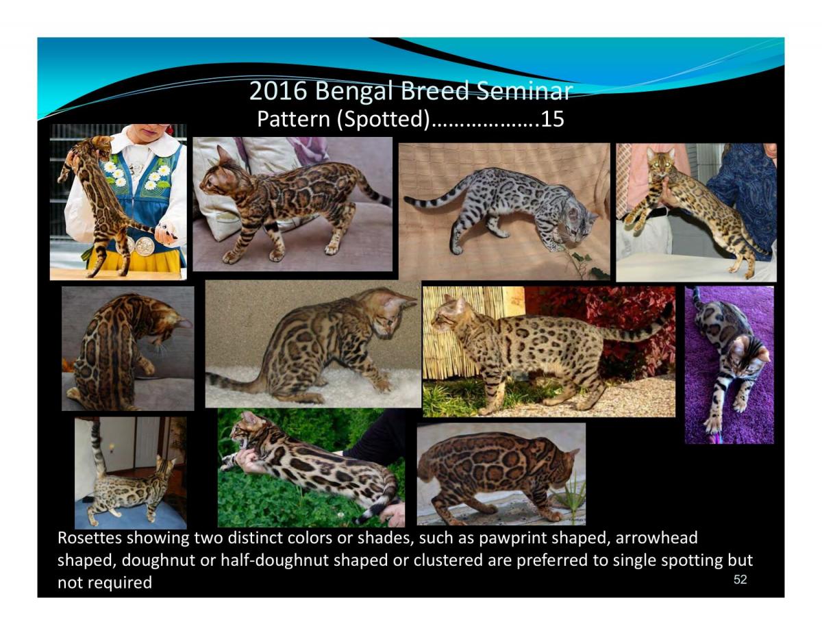 Contrast with ground color must be extreme, giving distinct pattern and sharp edges.2016 Bengal Breed Seminar Pattern (Spotted)......................................................15