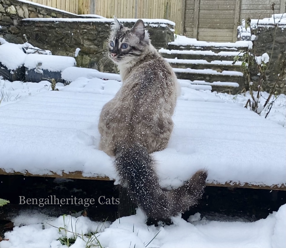 While you can train a Bengal to have "good manners", they are an active, inquisitive cat that loves to be up high. If you don't like a cat to leave the floor, a Bengal is probably not the right cat for you. Bengals are busy by nature. They are very affectionate and can be a "lap cat" whenever THEY want to be, but in general their idea of fun is playing, chasing, climbing and investigating. When a Bengal is in full play mode, it's rather like trying to hold on to running water! They'll often save the cuddle time for when they want to sleep. Many Bengals enjoy water and may join you in brushing your teeth or taking a shower. Some Bengals are vocal while others are more quiet and selective about using their voice.