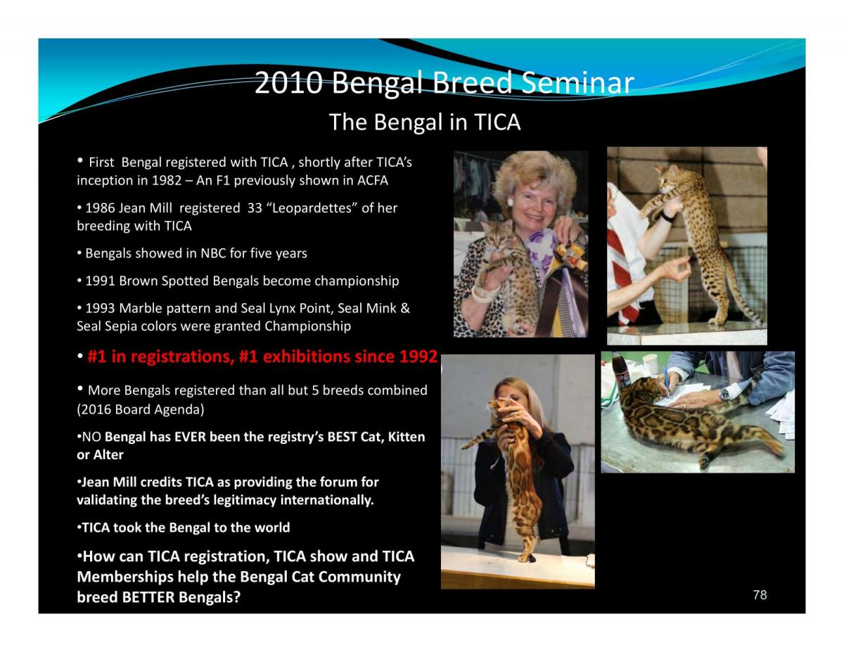 • More Bengals registered than all but 5 breeds combined (2016 Board Agenda)