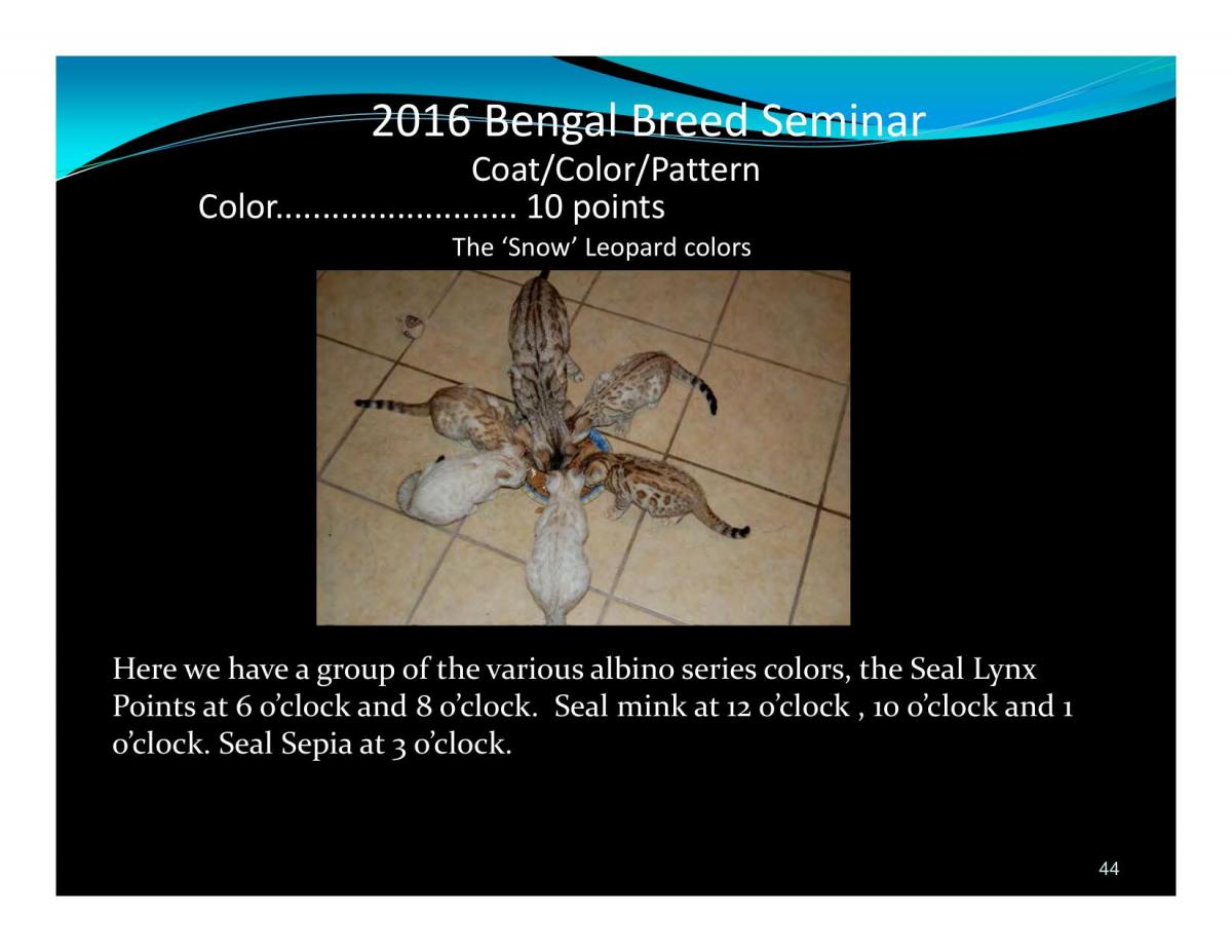 Here we have a group of the various albino series colors, the Seal Lynx Points at 6 o clock and 8 o' clock. Seal mink at 12 o' clock, 10 o' clock and 1 o' clock. Seal Sepia at 3 o' clock