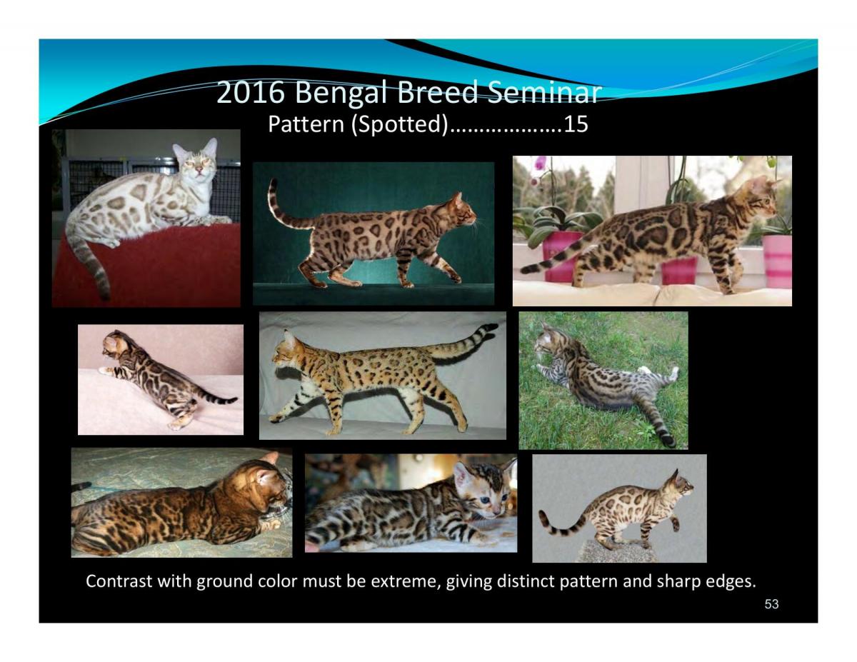 Contrast with ground color must be extreme, giving distinct pattern and sharp edges.2016 Bengal Breed Seminar Pattern (Spotted)......................................................15