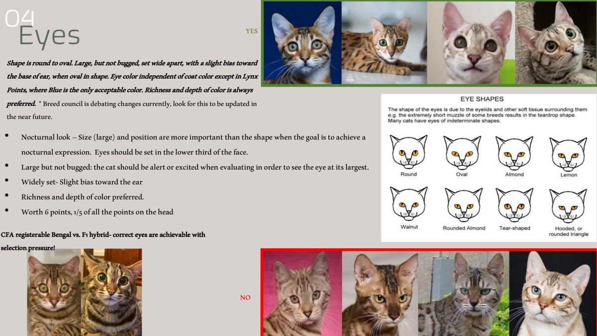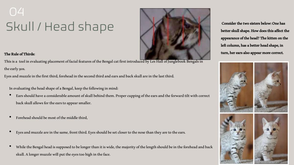 • Note that eyes, muzzle , and ears have the same point allocation . These important features are crucial to a well balanced Bengal head.
